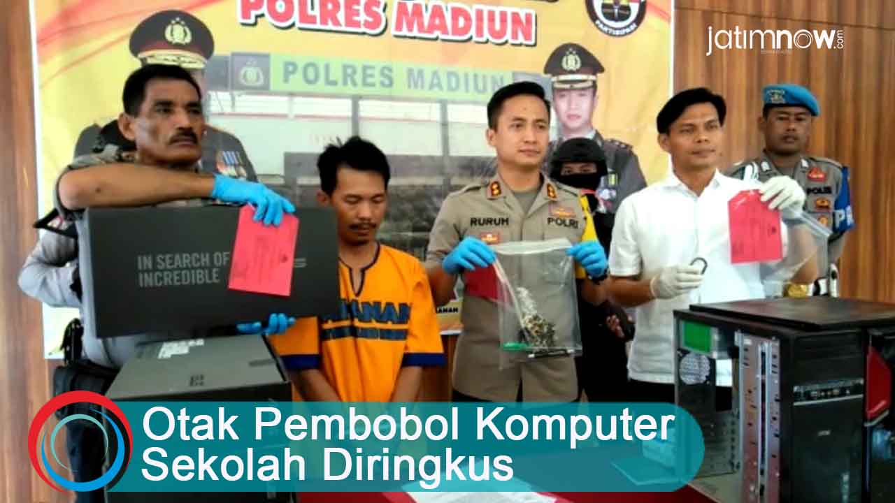 jatimnow.com - Kasus pencurian komputer dan laptop yang terjadi di sekolah-sekolah berhasil diungkap oleh Polres Madiun. Sindikat ini telah membobol puluhan sekolahan di beberapa kota di Provinsi Jawa Timur dan Jawa Barat.