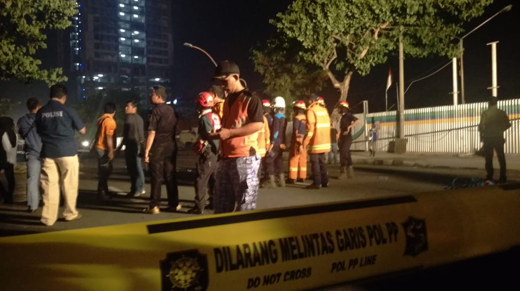jatimnow.com - Petugas kepolisian dan Pemkot Surabaya mendatangi lokasi Jalan Raya Gubeng, Surabaya yang ambles dan menyerupai jurang, Selasa (18/12/2018) malam.