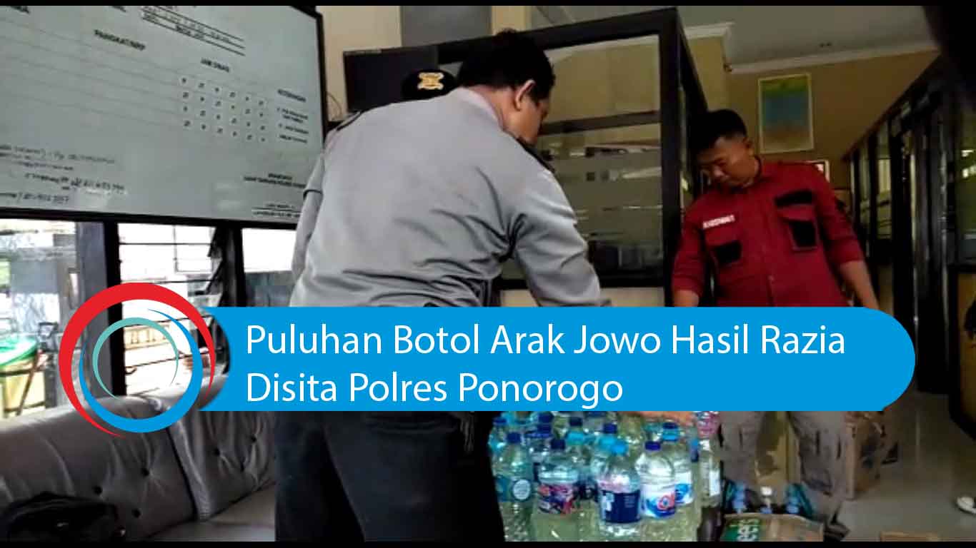 jatimnow.com - Sat Sabhara Polres Ponorogo merazia sejumlah cafe dan sejumlah tempat karaoke. Hasilnya, 72 botol air mineral ukuran 1.5 liter isi arak jowo disita.