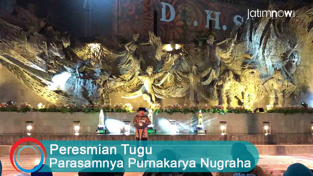jatimnow.com — Titik awal pengukuran awal kilometer Kota Surabaya atau yang biasanya di sebut titik nol yang berada di Kantor Gubernur Provinsi Jatim kini memiliki tugu baru bernama Parasamya Purnakarya Nugraha.