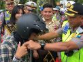 Selain itu juga memberikan himbauan agar memperhatikan aturan berlalu lintas dengan melengkapi surat kendaraan serta membagikan stiker bertuliskan millenial safety road kepada sejumlah pengendara.