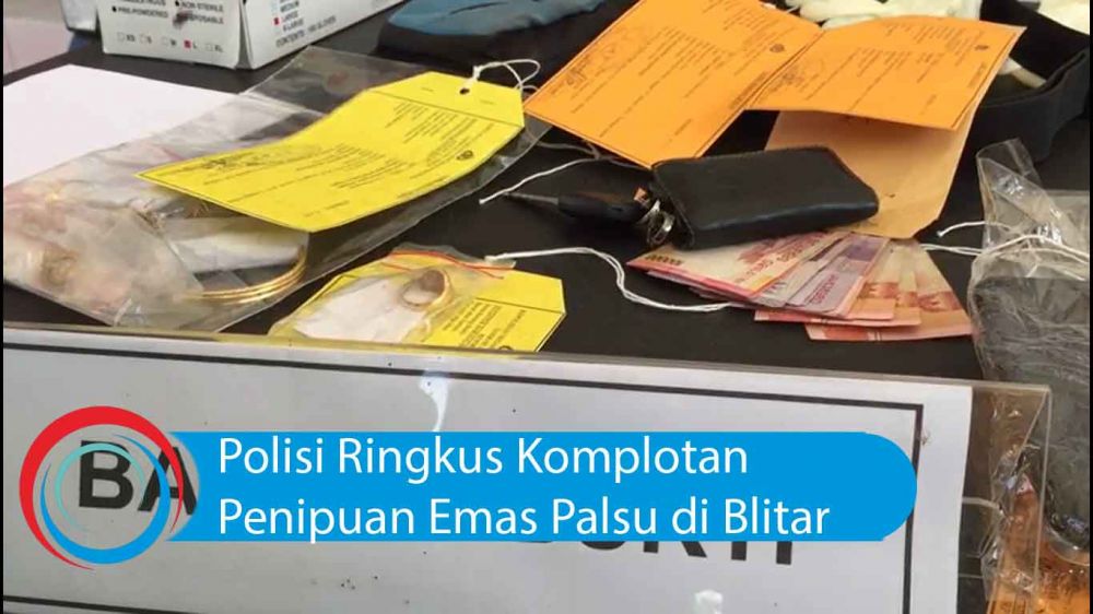 jatimnow.com - Komplotan penipuan emas palsu berhasil diringkus polisi, Selasa (29/1/2019). Pelaku berjumlah empat orang yang berasal dari Kabupaten Malang. Telah beraksi di beberapa wilayah antara lain Tulungagung dan Trenggalek.