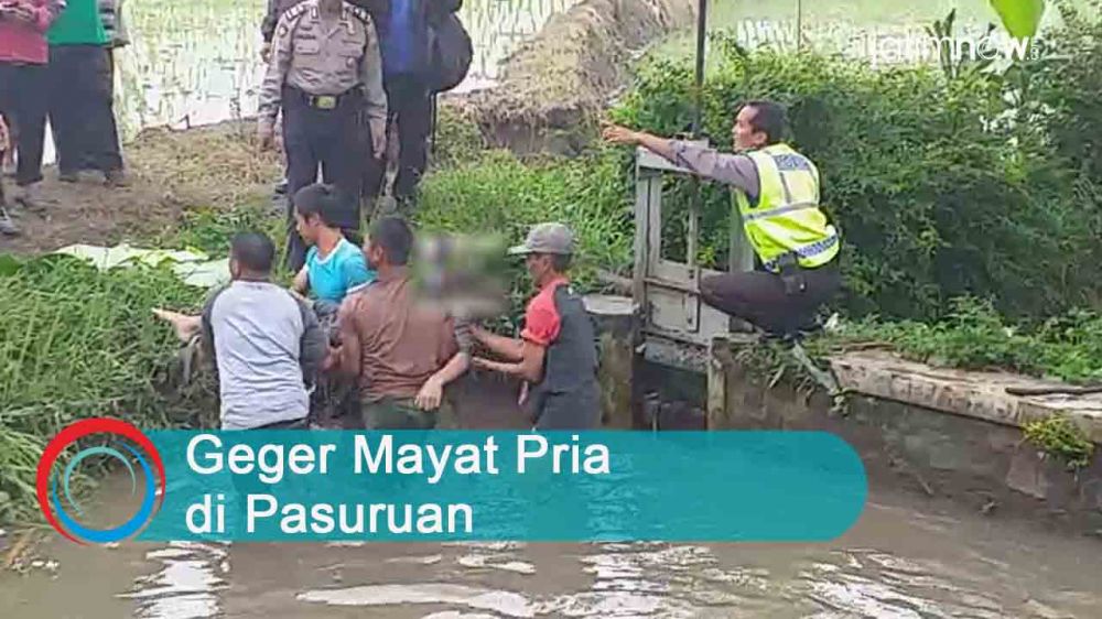 jatimnow.com - Warga Desa Lecari Kabupaten Pasuruan digegerkan dengan ditemukannya sesosok mayat pria tersangkut di pintu air sungai irigasi persawahan, masuk Lingkungan Kutu’at, Kamis (31/1/2019).