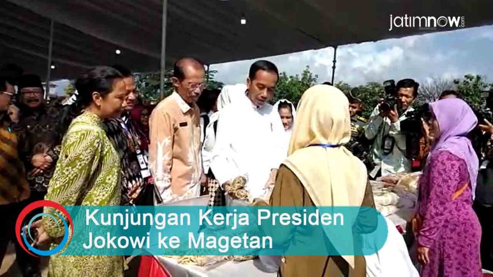 jatimnow.com - Presiden Joko Widodo (Jokowi) melakukan kunjungan kerja di Kabupaten Magetan, Jumat (1/2/2019). Presiden Jokowi bertemu dengan 10.128 nasabah Pemodalan Nasabah Madani (PNM) di Lapangan Cepoko, Kecamatan Panekan.