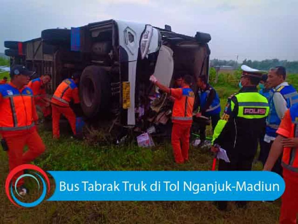 jatimnow.com - Kecelakaan antara bus pariwisata dengan truk terjadi di Tol Nganjuk-Madiun, tepatnya di KM 616.800/B, Jumat (15/2/2019). Satu orang tewas dan empat orang lainnya mengalami luka-luka. Korban tewas merupakan kernet dari bus pariwisata tersebut. Kecelakaan itu terjadi sekitar pukul empat pagi.