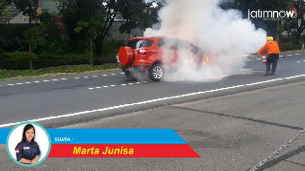 jatimnow.com - Sebuah mobil Ford EcoSport berwanya oranye terbakar di KM 2 Tol Juanda-Waru, sekitar pukul 09.20 Wib, Jumat (22/2/2019).