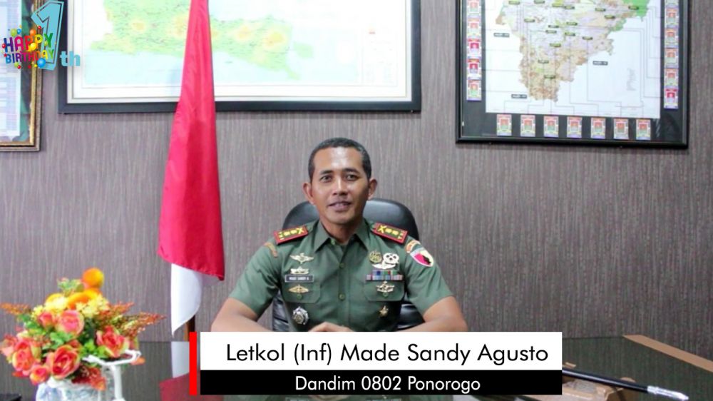 jatimnow.com - Di ulang tahun jatimnow.com yang pertama, yang jatuh pada 1 Maret, Dandim 0802 Ponorogo, Letkol (Inf) Made Sandy Agusto berharap semoga jatimnow.com semakin jaya dan dicintai pembaca.