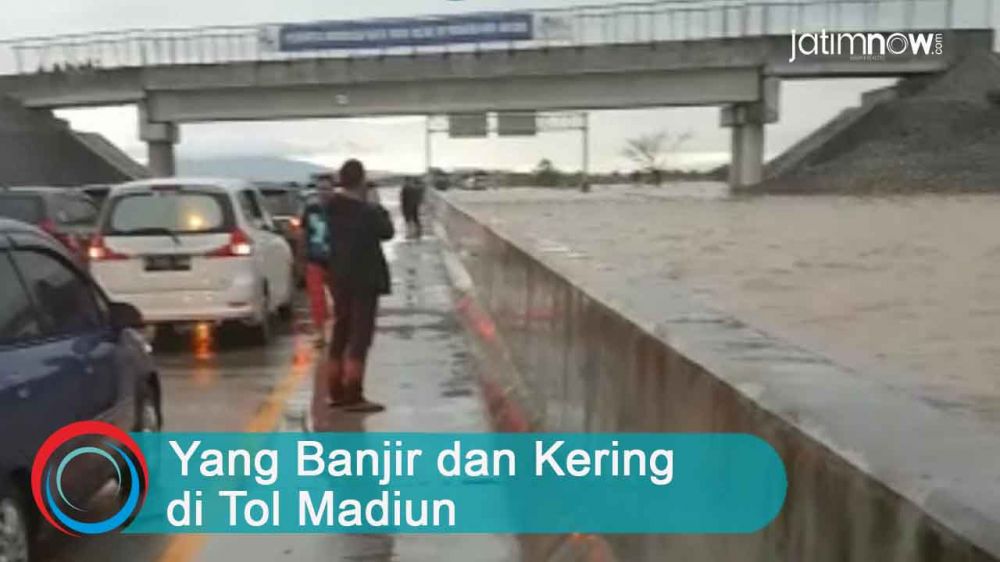 Jalan Tol Madiun dari arah Surabaya itu tenggelam banjir di KM 604 sampai 603 setinggi hingga 80 centimeter.