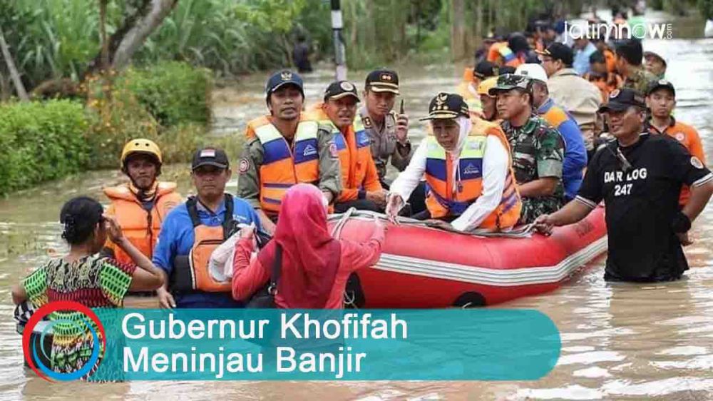 Dengan menaiki perahu karet, Khofifah mendatangi lokasi terjadinya banjir dan memberikan bantuan kepada warga. Selain itu, Khofifah memberikan instruksi kepada pemerintah daerah untuk segera melakukan penanganan.