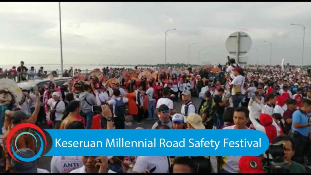 jatimnow.com - Ribuan masyarakat hadiri acara Millennial Road Safety Festival yang digelar di Jembatan Suramadu, Minggu (17/3/2019).