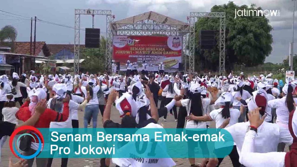 jatimnow.com - Paguyuban Instruktur Senam Tulungagung menggelar senam bersama sekaligus mendeklarasikan dukungannya kepada pasangan Capres dan Cawapres Joko Widodo (Jokowi)-KH Ma'ruf Amin, Senin (18/3/2019).