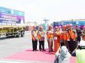 jatimnow.com - Gubernur Jawa Timur Khofifah Indar Parawansa melepas ekspor produk hortikultura dan agrotani sebesar Rp 28,174 Miliar ke berbagai negara Asia, Eropa dan Afrika di Terminal Petikemas Surabaya Jalan Tanjung Mutiara Perak Barat, Surabaya, Kamis (21/3/2019).