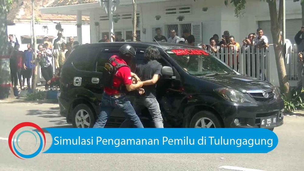 jatimnow.com - Polres Tulungagung mengadakan simulasi pengamanan pemilu 2019 yang dipusatkan di Mapolres Tulungagung, Kamis (28/3/2019).