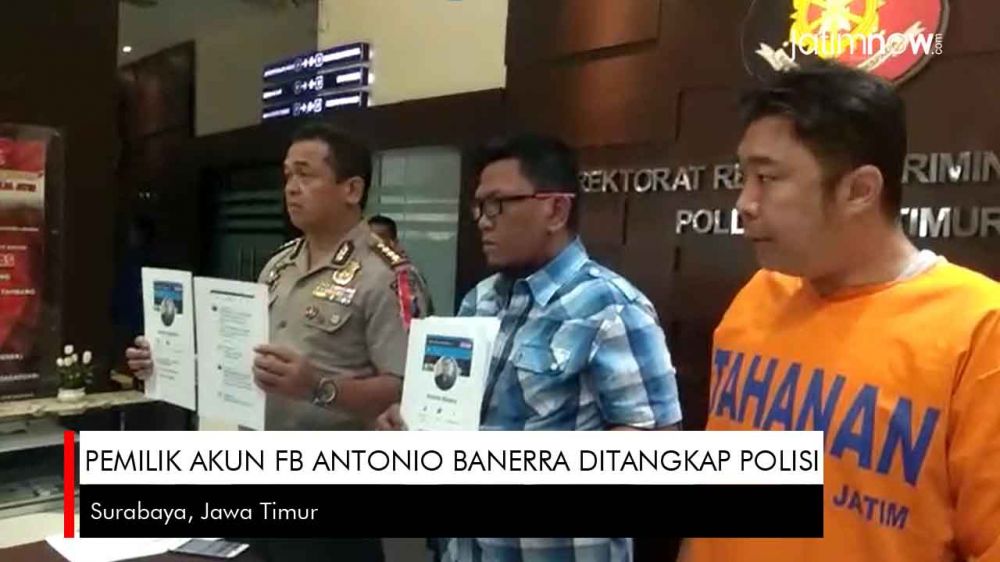 jatimnow.com - Pemilik akun Facebook Antonio Banerra yang bernama Arif Kurniawan Radjasa ditangkap polisi. Arif ditangkap karena akun Facebook yang dia kelola memposting bahwa tragedi 1998 akan bisa terulang dan menebar ancaman bagi wanita-wanita Etnis Tionghoa, Minggu (7/4/2019).