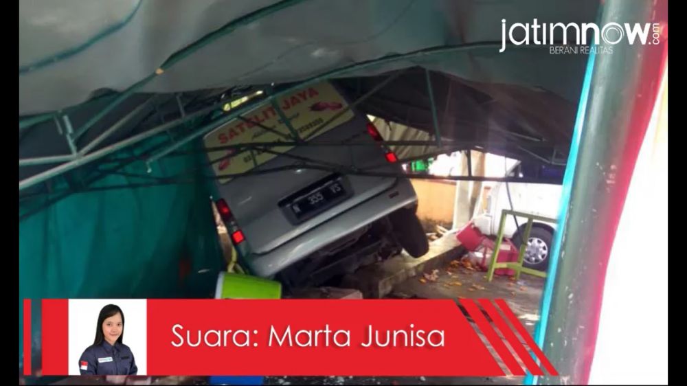 jatimnow.com - Mobil Grand Max dengan nomor polisi N 355 VS yang dikemudikan Tedi Andika warga Kabupaten Kediri menabrak sebuah warung milik Santoso yang berada di Jalan Ketintang Madya Kelurahan Karah, Kecamatan Jambangan, Surabaya. Sabtu (13/4/2019).