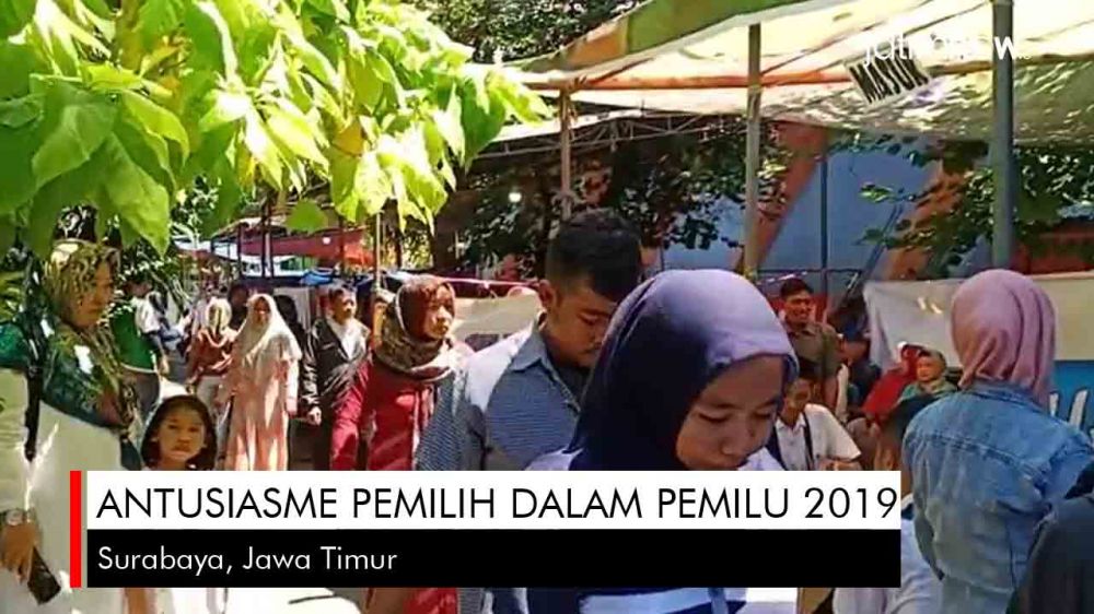 jatimnow.com - Tingkat partisipasi pemilih pada Pemilihan Umum (pemilu) 2019 diprediksi cukup tinggi. Para pemilih berbondong-bondong mendatangi Tempat Pemungutan Suara (TPS) untuk menggunakan hak pilihnya, Rabu (17/4/2019).