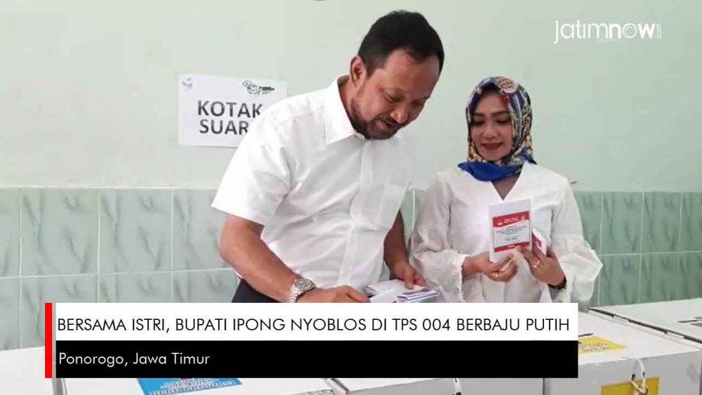 jatimnow.com - Bupati Ponorogo, Ipong Muchlissoni menggunakan hak pilihnya dalam Pemilihan Umum (pemilu) 2019 di Tempat Pemungutan Suara (TPS) 004 Mangkujayan, Ponorogo, Rabu (17/4/2019).