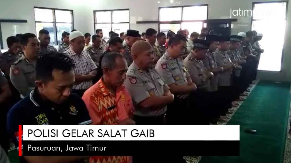 jatimnow.com - Polisi di Pasuruan menggelar salat gaib di Masjid At-Taqwa, Kamis (25/4/2019).