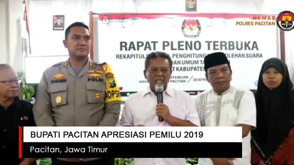 jatimnow.com - Bupati Pacitan Drs. Indartato M.M mengucapkan terima kasih kepada semua pihak dan mengapresiasi pelaksanaan Pemilu 2019 yang berjalan aman, lancar, tertib dan damai.