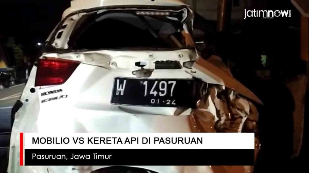 jatimnow.com - Sebuah mobil Honda Mobilio tertabrak kereta api di perlintasan kereta api (KA) tanpa palang pintu di daerah Yonkav 08, Beji, Pasuruan, Senin (6/5/2019) sekitar pukul 17.30 Wib.