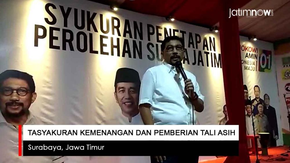Tasyakuran itu digelar setelah KPU Jawa Timur secara resmi mengumumkan kemenangan paslon nomor 01 dengan 16.231.668 suara atau sebesar 65,7 %.