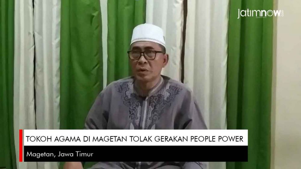 jatimnow.com - Ada wacana dari orang-orang pendukung 02 (Prabowo-Sandi) untuk melakukan people power. Tokoh masyarakat di Magetan ini pun menolak wacana tersebut.
