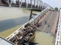 Jembatan tersebut terlihat putus sisi barat dan jatuh ke sungai Bengawan Solo. Sedangkan satu bagian lagi, terlihat masih 'nyantol' dibadan jembatan.