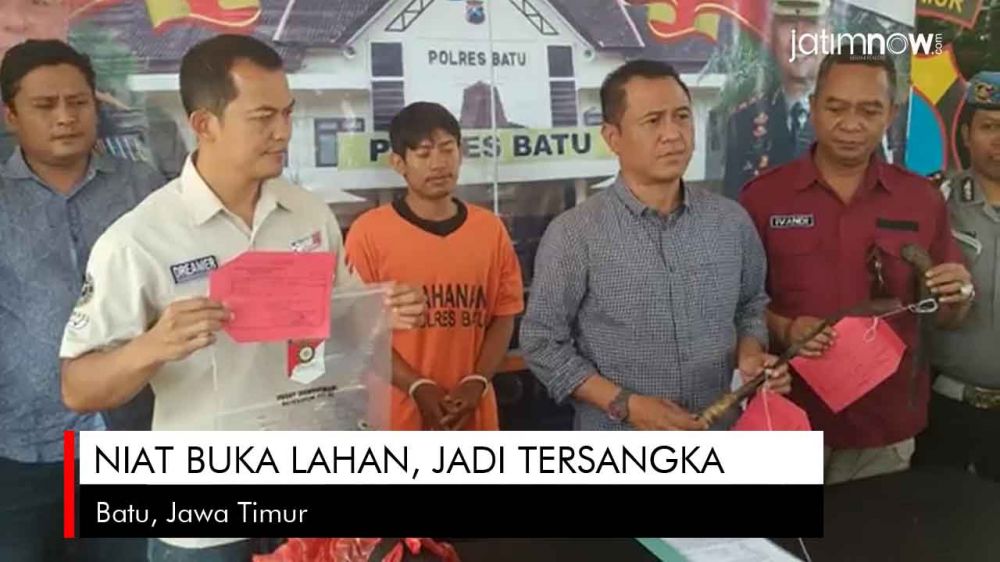 jatimnow.com - Pria bernama Jaenal, warga Jalan Dewi Sartika, Kelurahan Temas, Kota Batu ditangkap polisi karena membakar hutan di petak 219 Desa Tlekung, Kecamatan Junrejo, Kota Batu.