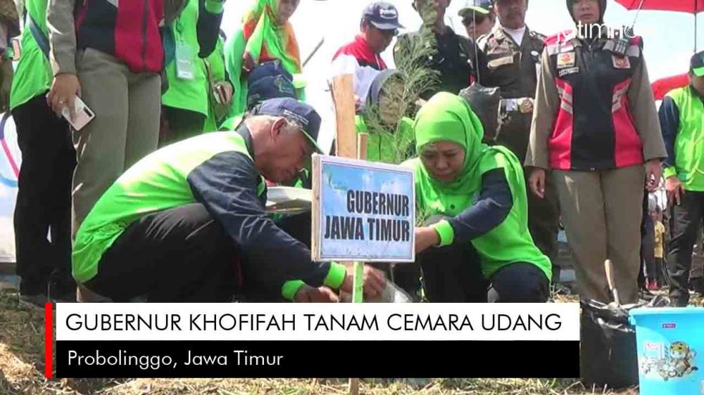 jatimnow.com - Gubernur Jawa Timur, Khofifah Indar Parawansa menanam pohon Cemara Udang di bibir Pantai Proboilinggo. Dalam acara ini Pangdam V Brawijaya, Mayor Jenderal TNI R Wisnoe Prasetja Boedi dan Wakapolda Jawa Timur, Brigjen Pol Toni Harmanto turut hadir.