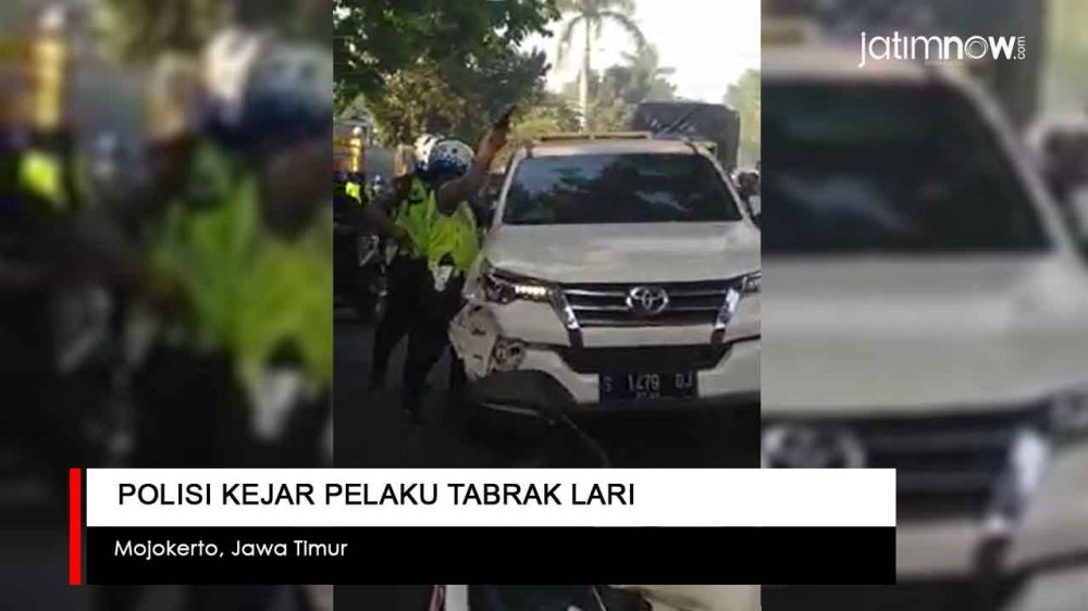 jatimnow.com - Video kejar-kejaran polisi dengan pelaku tabrak lari di Mojokerto jadi viral di media sosial. Dua anggota polisi lalulintas dan satu anggota berpakaian preman menghentikan sebuah mobil Toyota Fortuner dengan nopol S 1479 QJ.