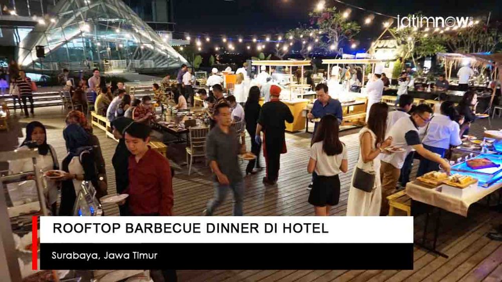 jatimnow - Dinner di restaurant atau di cafe dengan suasana indoor mungkin sudah biasa. Bagaimana jika dinner dalam suasana outdorr di rofftop hotel dengan pemandagan kota Surabaya?