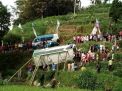 Warga mengganjal bus tersebut dengan bambu yang dibawanya agar body bus tidak terguling ke area pertanian.