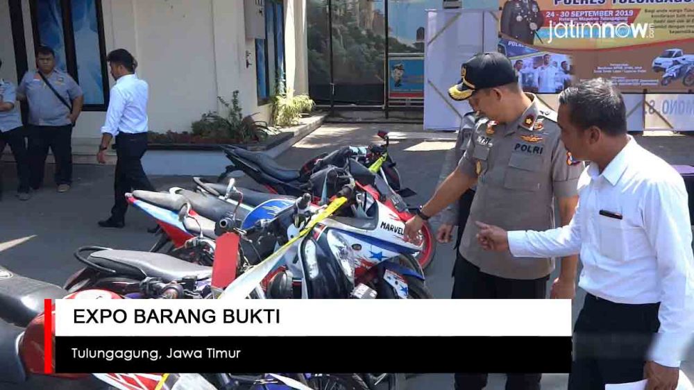 jatimnow.com - Polres Tulungagung menggelar expo barang bukti hasil kejahatan. Sebanyak 15 sepeda motor dan 2 unit mobil dipamerkan di halaman Polres.
