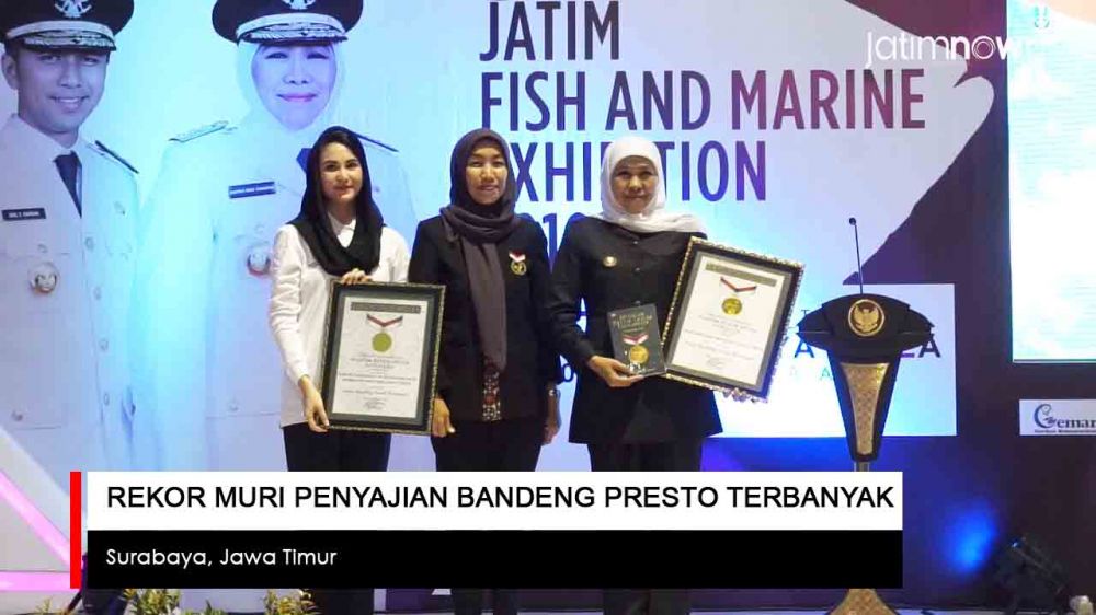 jatimnow.com - Sajian 11.021 bandeng presto untuk masyarakat umum dalam Jatim Fish and Marine Exhibition 2019, pecahkan rekor MURI. Acara yang digelar Dinas Perikanan Jawa Timur itu dimulai 15 hingga 17 November 2019, di parkir timur Plaza Surabaya.