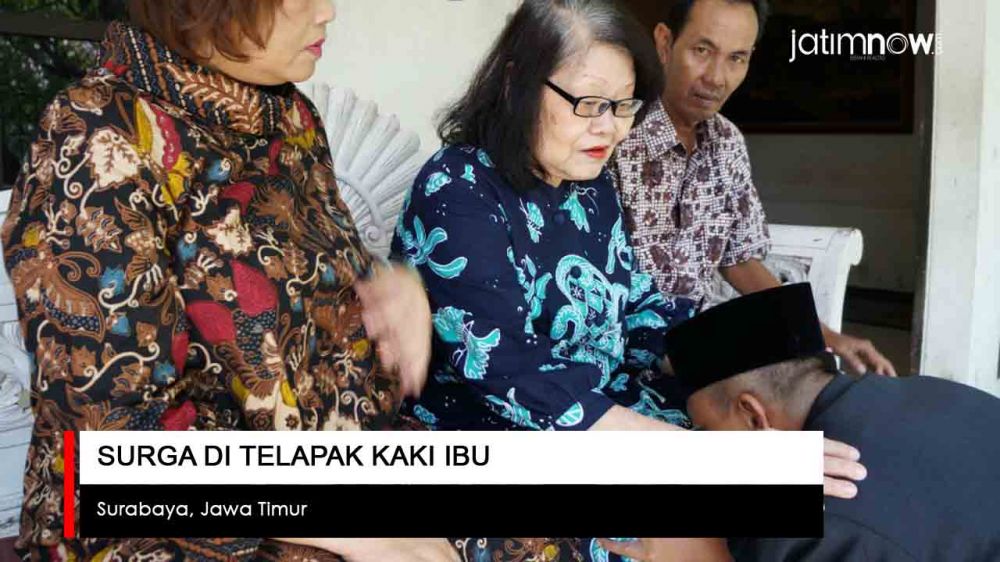 jatimnow.com - Kepala Satpol PP Kota Surabaya Irvan Widyanto mencium kaki sang ibunda (almarhumah) Soemiarti. Hal itu sebagai bukti tanda hormat dan cinta kasih anak kepada sang ibu.