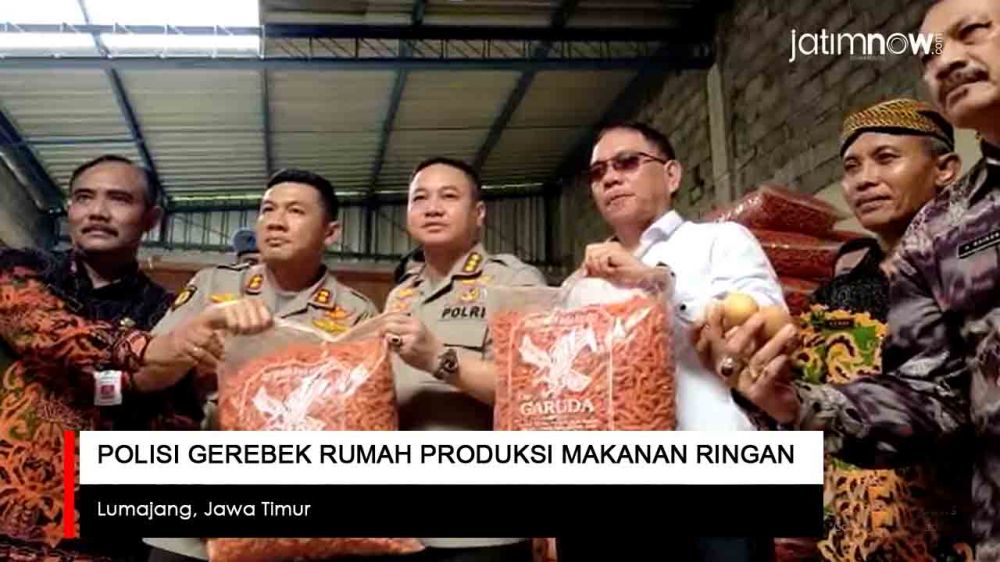 jatimnow.com - Ditreskrimum Polda Jatim menggerebek rumah produksi makanan ringan kue bidaran yang berada di Desa Tukum, Kecamatan Tekung, Kabupaten Lumajang, Selasa (7/1/2020).