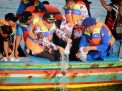 jatimnow.com - Pemerintah Kabupaten (Pemkab) Lamongan bersama Balai Besar Perikanan Budidaya Air Payau (BBPBAP) Jepara melakukan restocking rajungan dengan menebar 200 ribu benih di perairan pantai Desa Kemantren, Kecamatan Paciran, Selasa (3/3/2020).