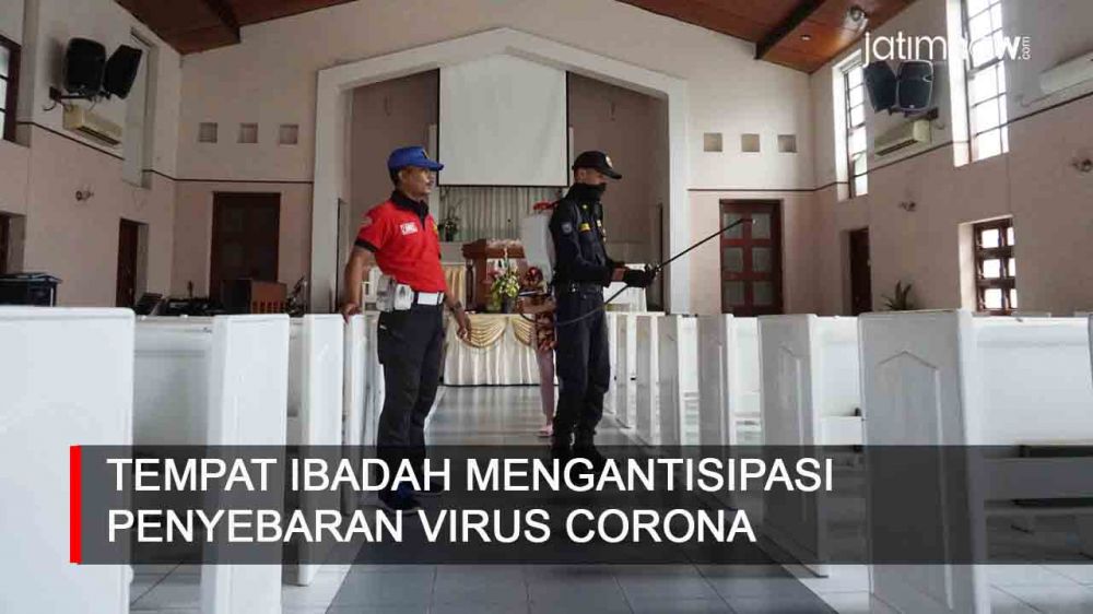 jatimnow.com - Antisipasi penyebaran wabah Virus Corona (Covid-19), tempat ibadah di Surabaya disemprot disinfektan.