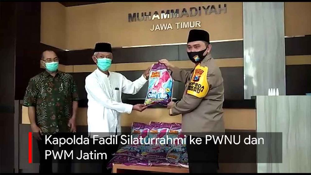 jatimnow.com - Kapolda Jawa Timur Irjen Pol M Fadil menggelar silaturrahmi ke Pengurus Wilayah Nahdlatul Ulama (PWNU) dan Pimpinan Wilayah Muhammadiyah (PWM) Jawa Timur, Jumat (15/5/2020).