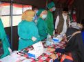 Sebelum meninggalkan dapur umum, seluruh relawan baik dari BPBD, Taggana, Dinas Sosial, TNI, Polri, dan tenaga kesehatan wajib menjalani rapid test.