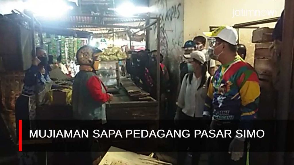 jatimnow.com - Calon wakil wali kota Surabaya Mujiaman Sukirno menyapa para pedagang di Pasar Simo, Sukomanunggal, Surabaya. Cawawali yang berpasangan dengan calon wali kota Machfud Arifin ini menerima keluhan dari pedagang Pasar Simo.