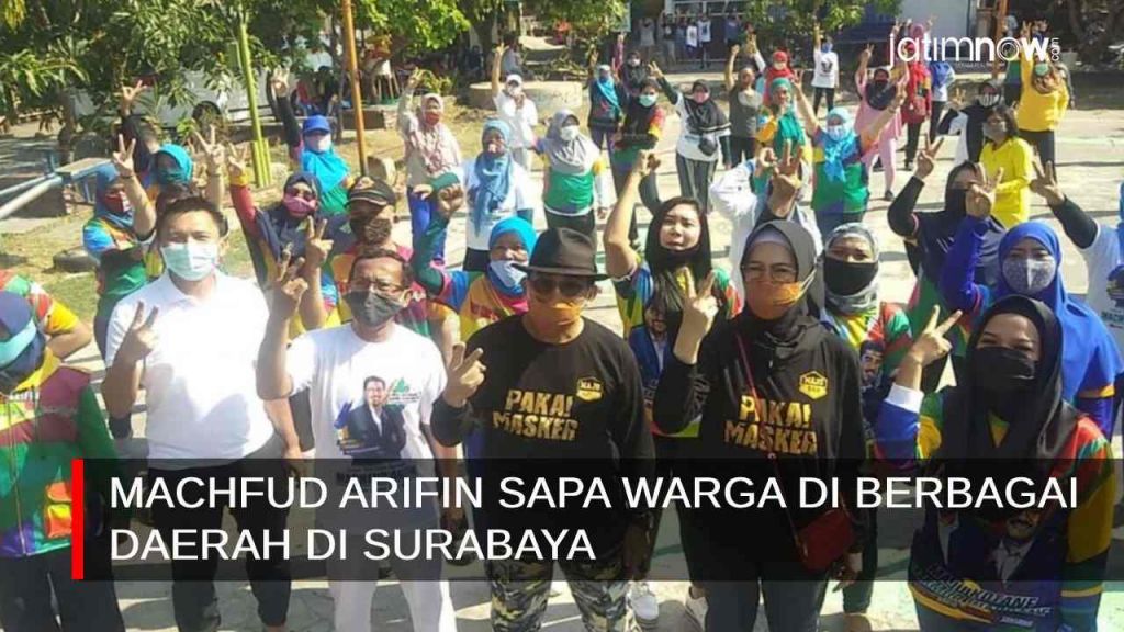 jatimnow.com - Calon Wali Kota Surabaya Nomor Urut 2, Irjen Pol (Purn) Machfud Arifin menyapa warga Pondok Benowo Indah dengan senam sehat bersama, Minggu (27/9/2020). Sapa warga itu juga dihadiri Azrul Ananda, Presiden Persebaya.