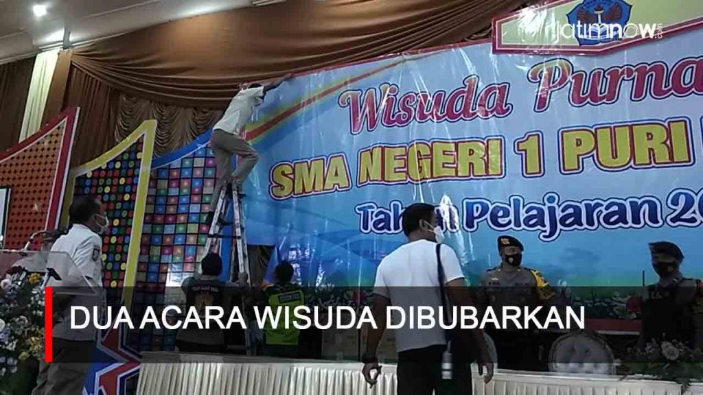 jatimnow.com - Wisuda SMA Negeri (SMAN) 1 Wringinanom, Gresik dan SMAN 1 Puri, Kabupaten Mojokerto dibubarkan Polres Mojokerto Kota, Rabu (19/5/2021).