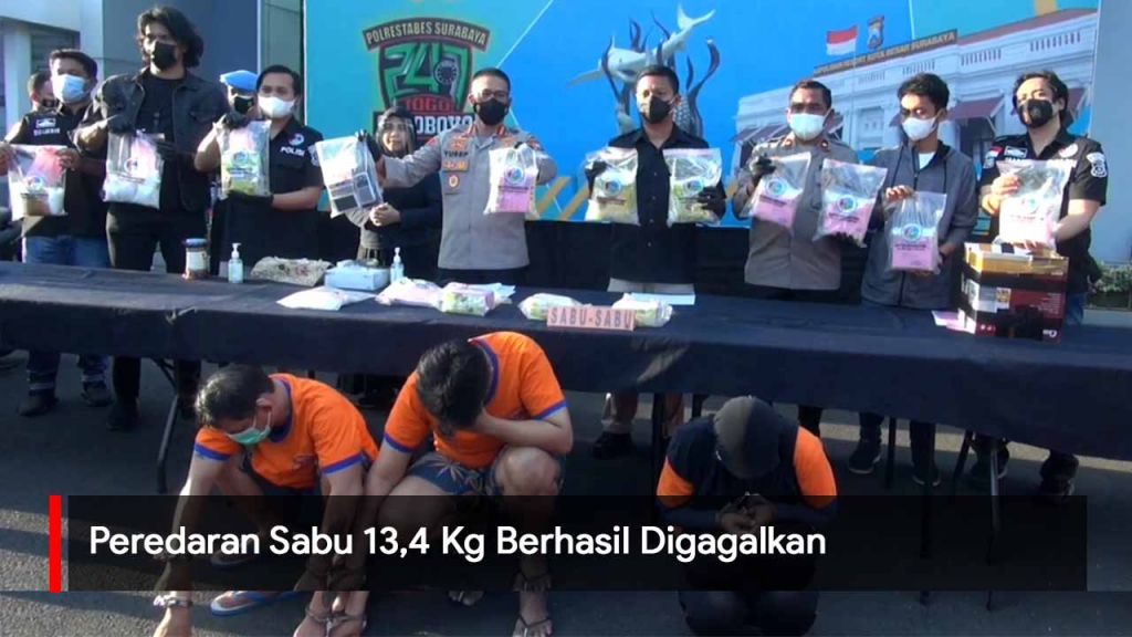 jatimnow.com - Satresnarkoba Polrestabes Surabaya menggagalkan peredaran narkoba jenis sabu seberat 13,4 kilogram dari jaringan lintas provinsi.