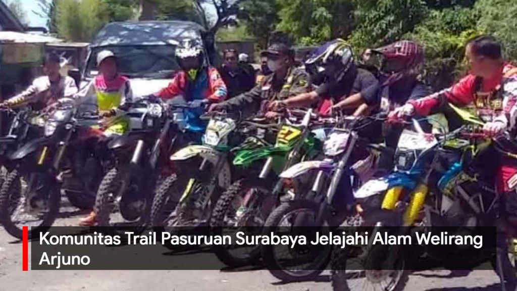jatimnow.com - Komunitas motor trail dari Pasuruan dan Surabaya menggelar touring di kawasan hutan dataran tinggi Gunung Arjuno-Welirang, Kecamatan Prigen, Kabupaten Pasuruan, Sabtu (18/9/2021).