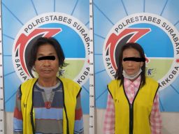 Surabaya - Pasangan suami istri yang kesehariannya bekerja sebagai pengamen topeng monyet ditangkap Sat Resnarkoba Polrestabes Surabaya, lantaran menjadi pengedar narkoba.