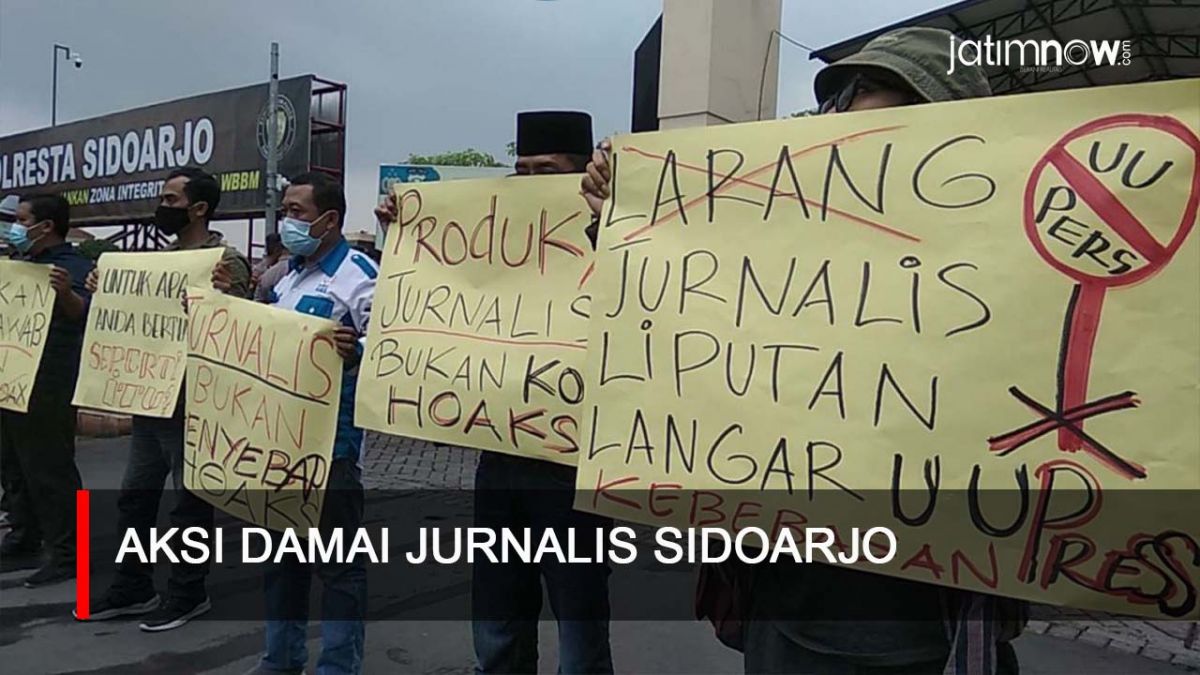 Mereka melakukan aksi damai karena salah satu oknum polisi yang berdinas di Polresta Sidoarjo menuduh berita yang ditulis oleh jurnalis merupakan hoaks.