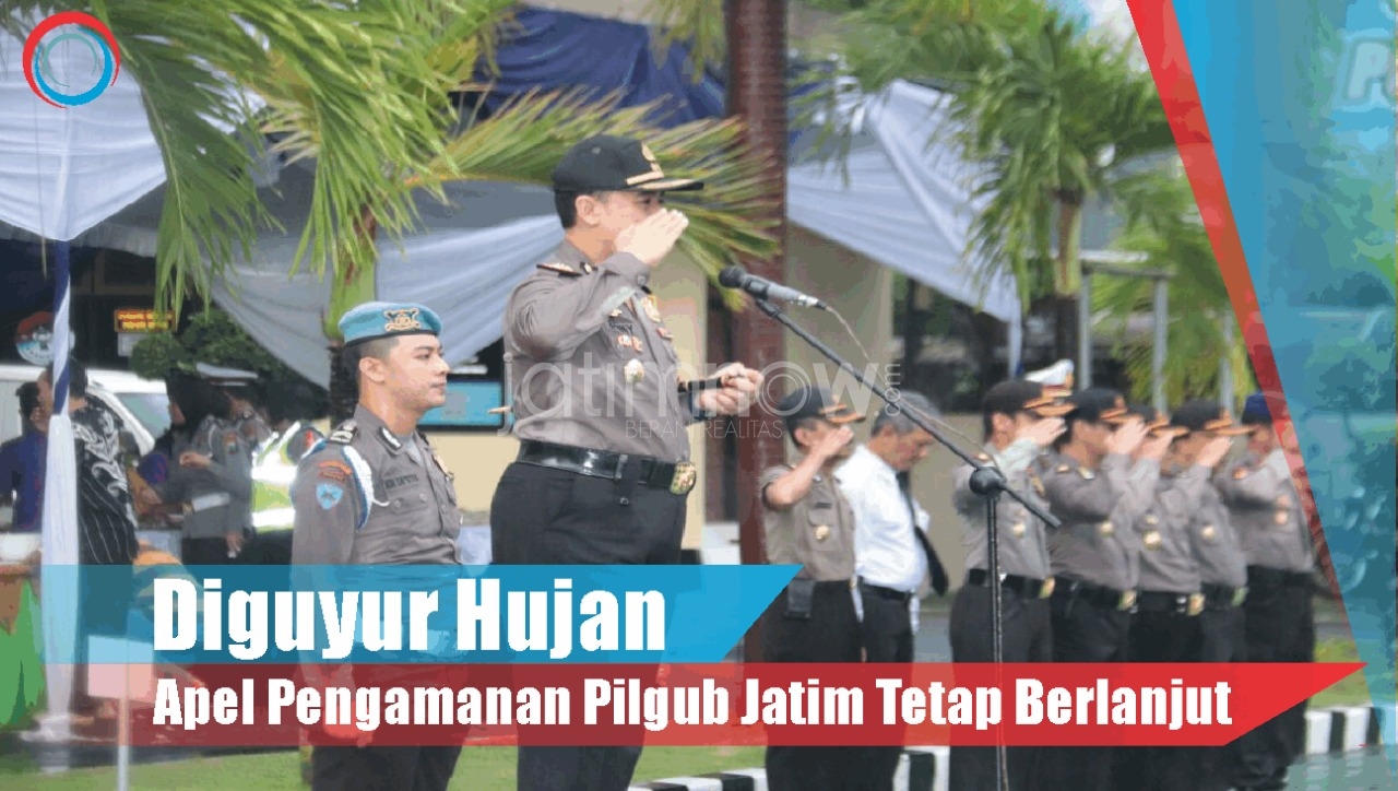 jatimnow - Meskipun hujan mengguyur langit Bumi Blambangan Senin (25/6/2018) pagi, apel pengamanan Pilgub Jawa Timur tetap dilangsungkan di halaman Mapolres Banyuwangi.
