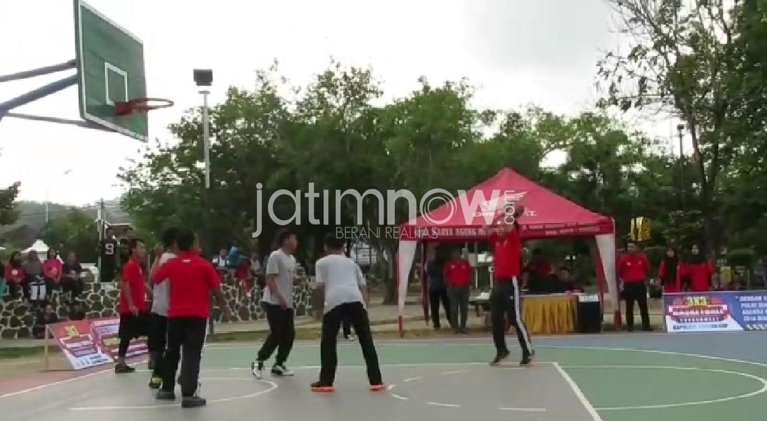 jatimnow.com - Kapolres Pacitan, AKBP Setyo K Heriyatno membuka Turnamen Basket Kapolres Pacitan Cup di Kabupaten Pacitan. Dengan menggunakan celana training dan kaos merah, AKBP Setyo mencoba menerobos lawan-lawannya yang lebih muda dan masih pelajar. Bahkan, beberapa kali juga dijegal oleh lawannya. Namun, Setyo masih bisa merebut kembali bolanya, hingga akhirnya dia berhasil memasukkan ke keranjang dan mendapatkan 3 point.