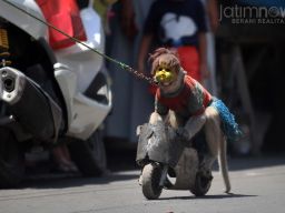 Berbagai atraksi mulai dari bermain egrang hingga mengendarai sepeda mainan berbentuk motor sport ditampilkan oleh seekor monyet itu dengan mahir dan menghibur, terutama bagi anak-anak yang kebetulan sedang bersama ibunya ke pasar.